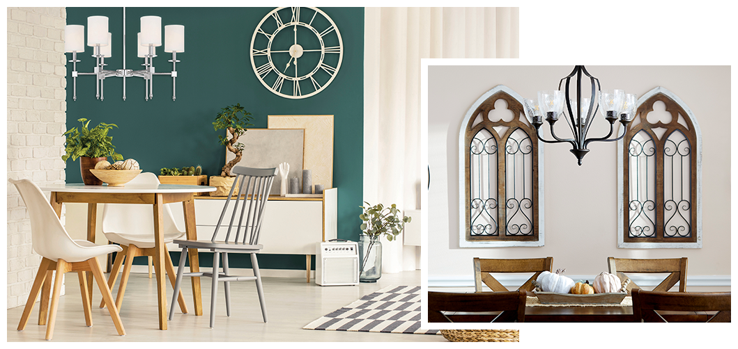 At The Light House Gallery, we provide one of the largest selections of light fixtures in the area to ensure that you can find the perfect fixture to fit your dining room’s size and style. Continue reading to learn more about the three most common types of fixtures found above dining tables.